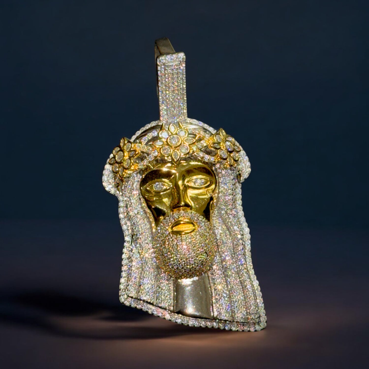 Yellow Silver Luxury. Featuring genuine, fiery VVS Moissanite for a diamond-like glow. The ultimate Jesus Charm built for lasting wear and superior shine.